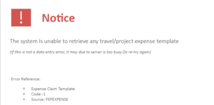 Error 'The system is unable to retrieve any travel/project expense template' when submitting Travel requisition to Claim module